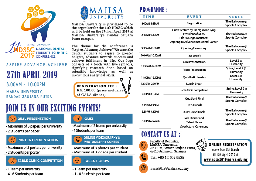 Venue: MAHSA University, Bandar Saujana Putra